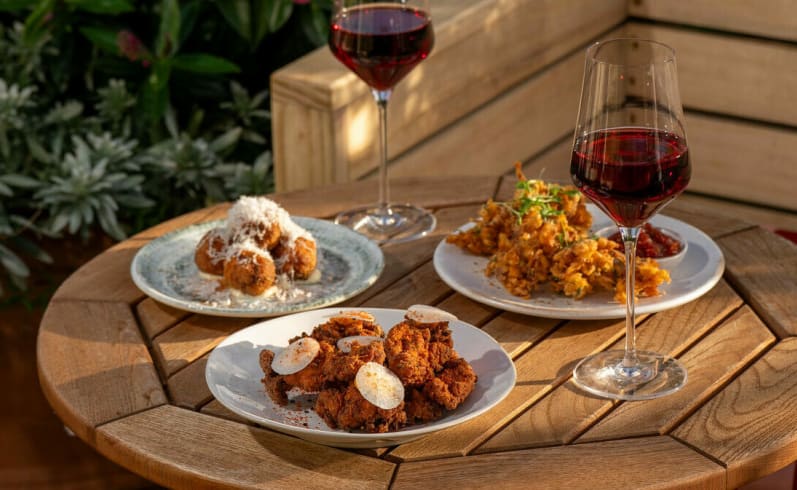 Located on the 6th floor of John Lewis, 1864 offers a calm escape from the crowds below, with open-air seating, private igloos, seasonal menus, and views across the London skyline. Whether you’re meeting friends for drinks or sharing small plates under the city lights, 1864 is a place to relax, unwind, and enjoy great food and good company. Take a seat on our outdoor terrace surrounded by wildflowers, settle into a private booth or heated igloo, and enjoy everything from casual catch-ups to weekend get-togethers. Our kitchen serves a fresh, seasonal menu of light bites, salads and snacks made for sharing, while the bar features a line-up of classic cocktails, crisp wines, beers, and refreshing soft drinks.